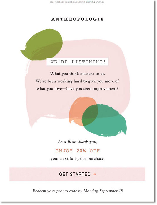 Para acabar te damos un consejo: recuerda que siempre que pidas algo a tus clientes – engagement, direcciones de email, feedback… – tienes que ofrecerles algo a cambio. No hace falta que sea algo grande, pero tiene que ser algo que tus clientes valoren. Es muy útil un pequeño descuento o una muestra gratis de un producto.