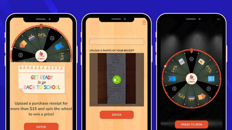 Try our Back to School Spin the Wheel DEMO with purchase receipt validation requirement. The perfect way to reward paying customers!