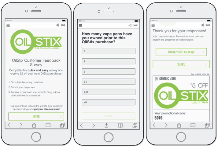 In the example below, a vape tech company shared a survey with their followers. They learnt more about customer opinions and experiences – and offered an in-store discount as the incentive.