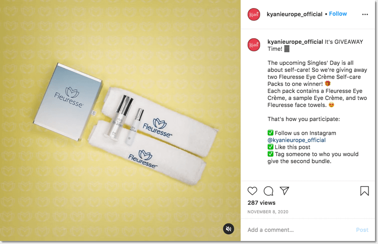 Here’s another example from Kyani Europe. The brand decided to give away two self-care bundles right in time for Singles’ Day!